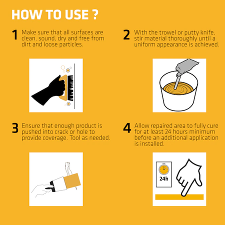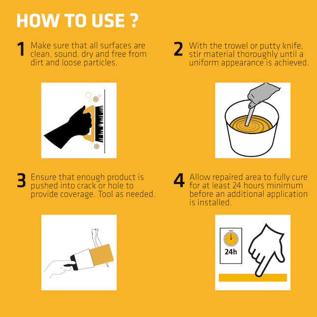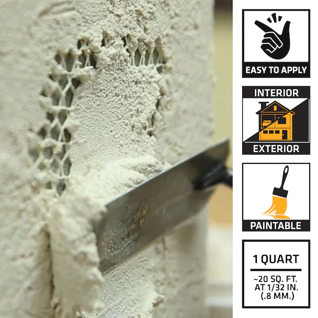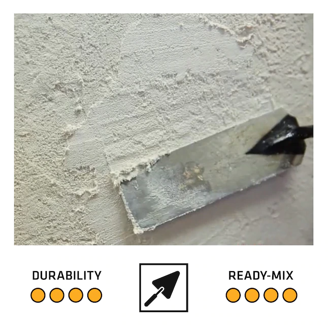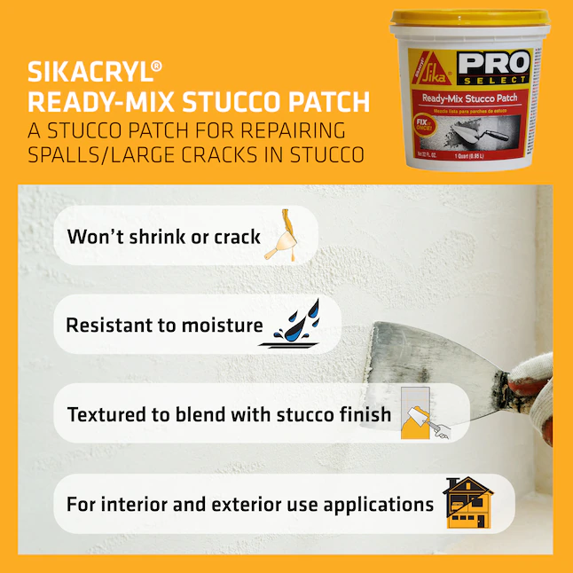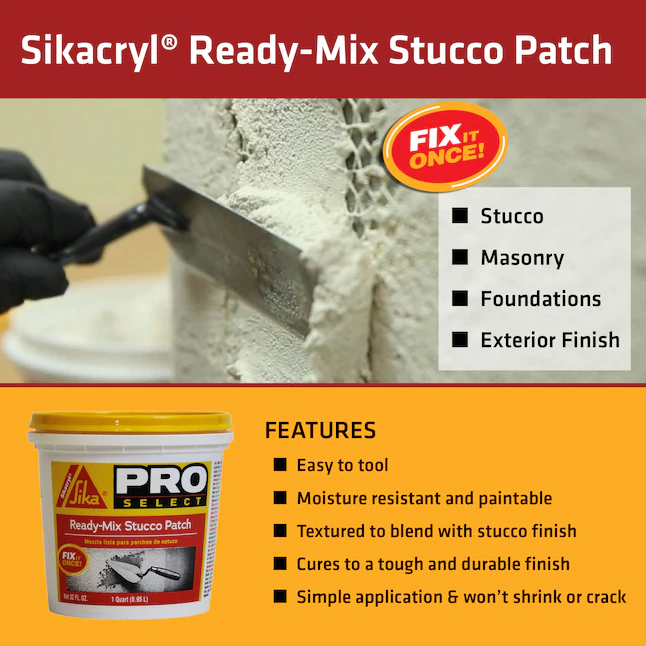 A ready to use, acrylic-based, stucco patch for repairing small holes and cracks in stucco surfaces