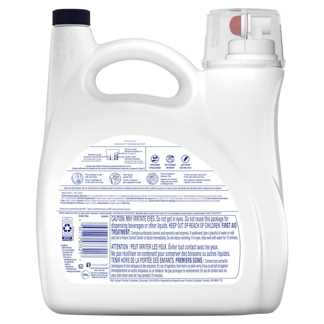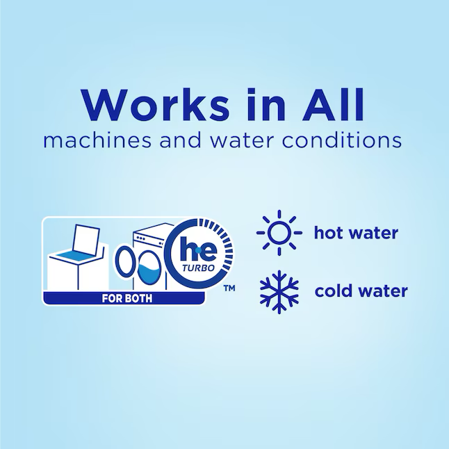 • Specifications Detergent Type Liquid Number of Loads 100 Fabric Softener Included No Package Quantity 1 Free of Dyes and Perfumes Yes Safe for All Fabrics Yes Grade Commercial/Residential Scent N/A High Efficiency Yes Scent Profile Unscented Unit of Measure Fluid ounce(s) Natural No Unit of Measure Quantity 146