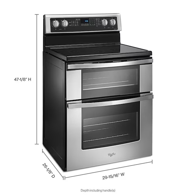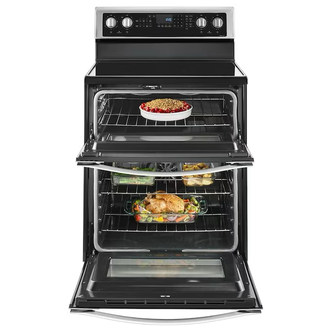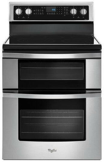 Whirlpool 30-in Glass Top 5 Burners 4.2-cu ft / 2.5-cu ft Freestanding Double Oven Electric Range (Stainless Steel)
