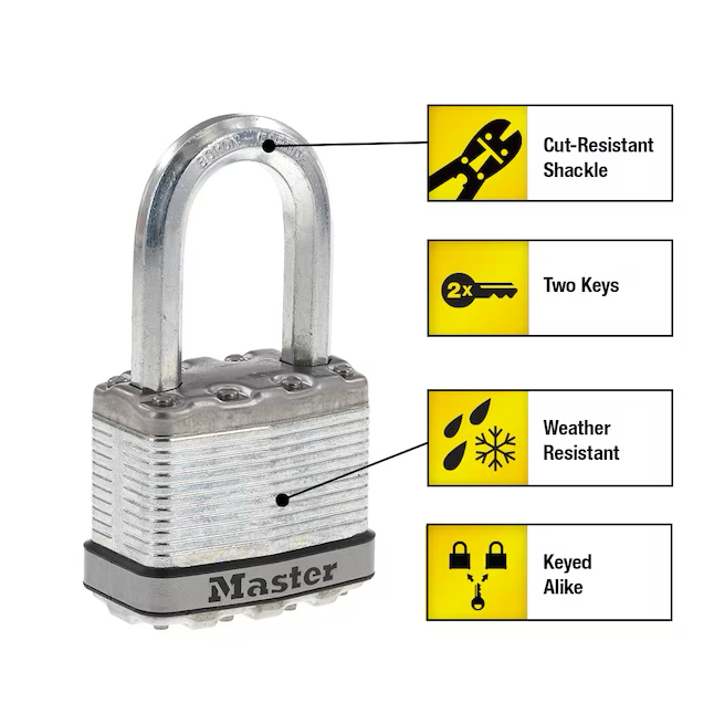 Master Lock Item # 12230026 | Model # M5XQLFMaster Lock Heavy Duty Outdoor Keyed Padlock 1-1/2-in Shackle Keyed Alike (4-Pack)