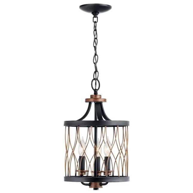 Kichler Item #757781 | Model #34779Kichler Brookglen 3-Light Black with Gold Tone French Country/Cottage Drum Mini Hanging Pendant Light