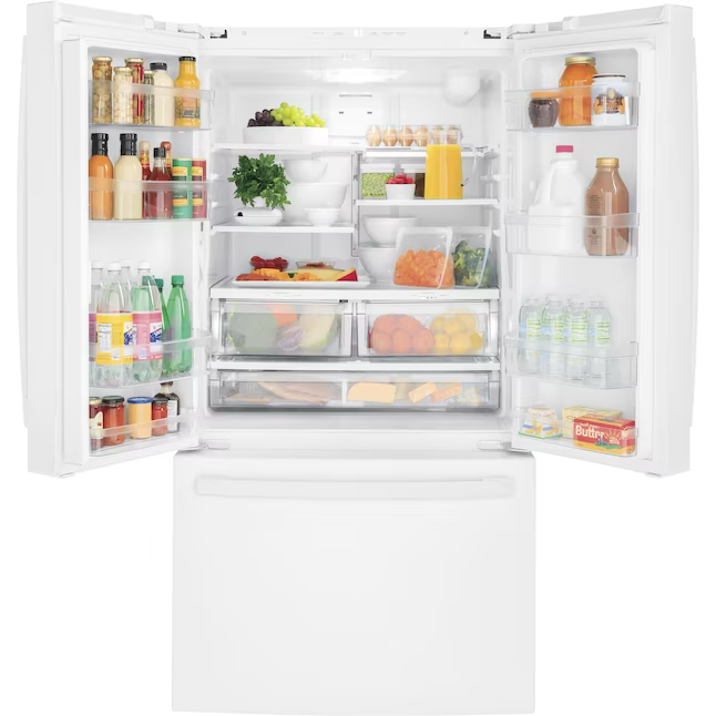 GE Item # 71223168 | Model # GNE27JGMWWGE 27-cu ft French Door Refrigerator with Ice Maker and Water dispenser (White) ENERGY STAR