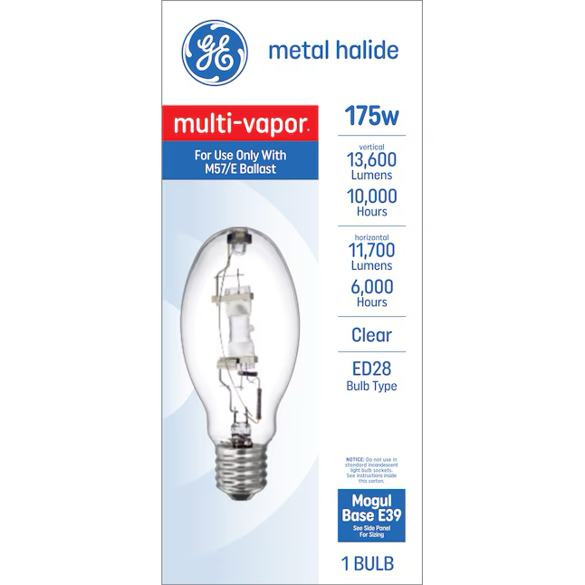 GE Item # 71223182 | Model # 30951GE 175-Watt EQ ED28 Cool White Mogul Base (e-39) Metal Halide Light Bulb