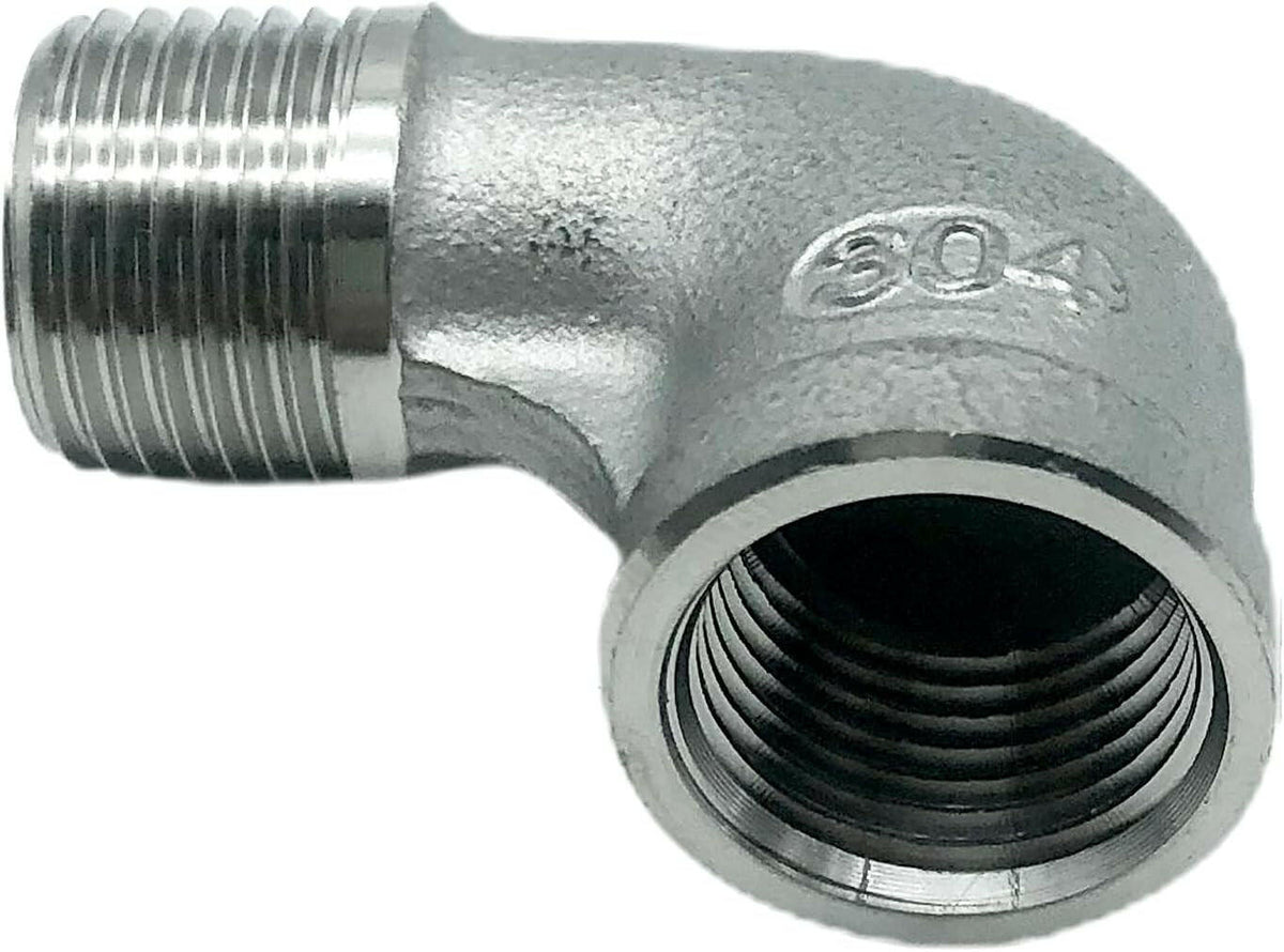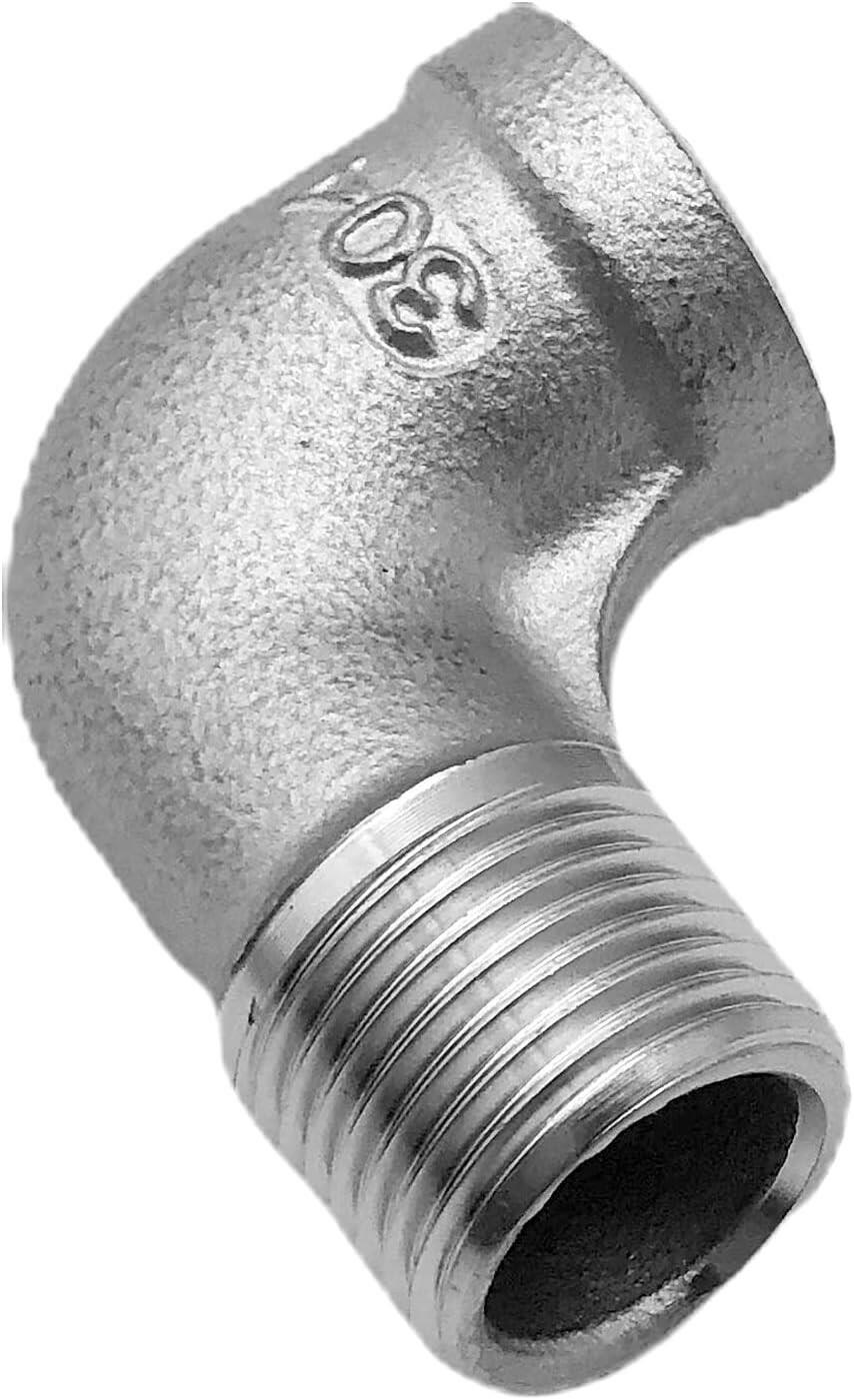 A 90 degree street elbow is a stainless steel 304 cast pipe fitting with external thread National Pipe Taper (NPT) thread on one end and internal thread NPT on the other end, used for industrial connections of pipes or fittings of the same end type, diameter, or material. It is a component used in many different industries to connect, terminate, control flow, and change pipeline direction. Suitable for water, air, natural gas, petroleum, fuel, refrigeration, instruments, etc. (NPT thread size is not the actual diameter, only the nominal pipe size). When purchasing pipe fittings, please consider the application as it will affect the material type, shape, size, and required durability. Accessories come in various shapes, styles, sizes, and schedules with or without threads