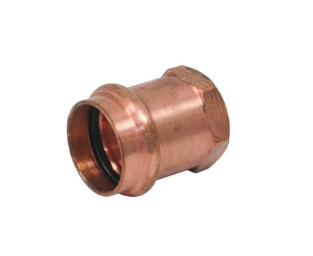 The 1 inch x 3/4 inch Copper Press x FPT Pressure Female Adapter features an high-quality EPDM O-ring to create a tight, leak-free seal. Easy to use, simply apply pressure from a pressing tool to tighten the O-ring onto the tube, ensuring a clean, watertight seal in seconds with no flame, solder, or flux. Connections can be made in wet or dry conditions reducing project downtime. The coupling is compatible with all major hydraulic press tools and is NSF listed and lead-free.