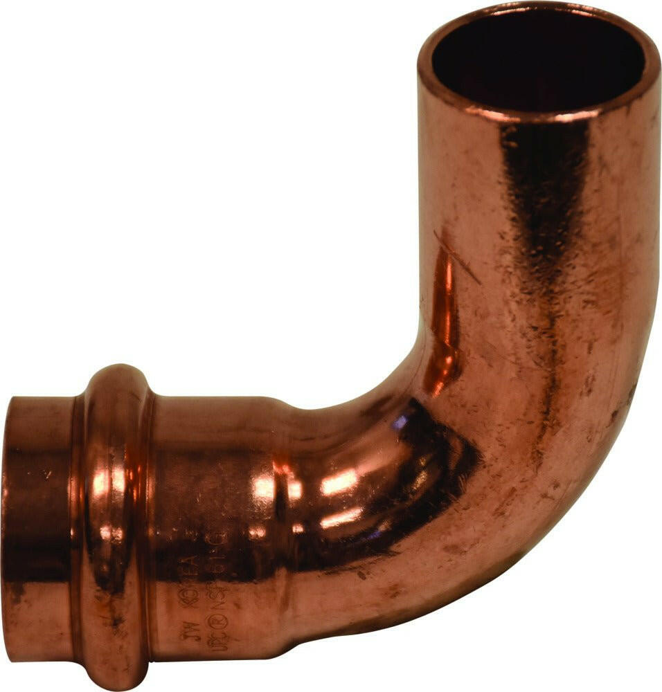 The 3/4 inch x 3/4 inch Copper FTG x Press Pressure 90-Degree Street Elbow features an high-quality EPDM O-ring to create a tight, leak-free seal. Easy to use, simply apply pressure from a pressing tool to tighten the O-ring onto the tube, ensuring a clean, watertight seal in seconds with no flame, solder, or flux. Connections can be made in wet or dry conditions reducing project downtime. The coupling is compatible with all major hydraulic press tools and is NSF listed and lead-free.
