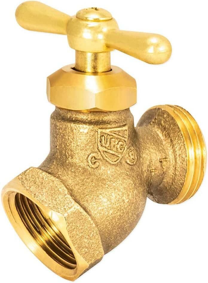 The EZ-FLO Female No-Kink Hose Bibb is constructed of a heavy-duty brass body that resists corrosion and provides strength and durability. The no-kink hose bibb is equipped with a 3/4 inch Female Iron Pipe (FIP) connection and a 3/4 inch Male Hose Thread (MHT) outlet connection. Designed for irrigation purposes only, this valve is not intended for drinking water applications. Compatible with galvanized plumbing systems and can be used with copper and CPVC. Certified by the Canadian Standard Association (CSA) and the Canadian Uniform Plumbing Code (CUPC) for product safety.