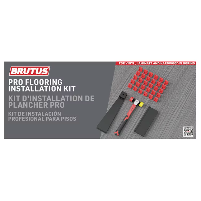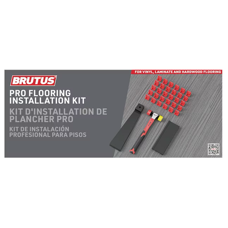 Install vinyl, laminate and engineered hardwood flooring with precision and confidence with the BRUTUS Pro Flooring Installation Kit. Developed by professionals for professionals and DIYers alike, this kit features a dual-faced mallet, tapping block, pull bar, and 30 expansion joint spacers that stay in place until you’re read to remove them. Reusable, easy to use and easy to transport.