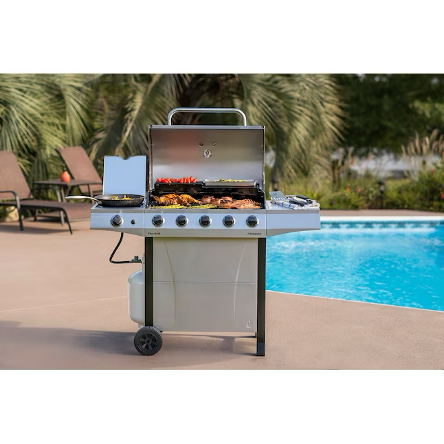Char-Broil Performance Series Silver 5-Burner Liquid Propane Gas Grill with 1 Side Burner