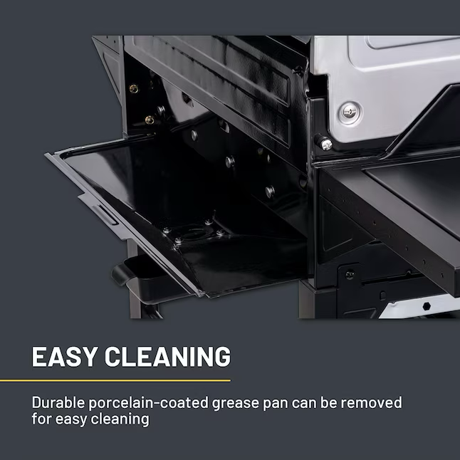• Porcelain coated grates are easy to clean and stainless steel burners are rust-resistant for durability