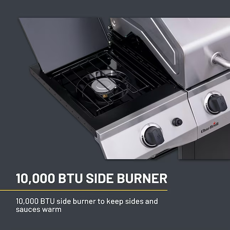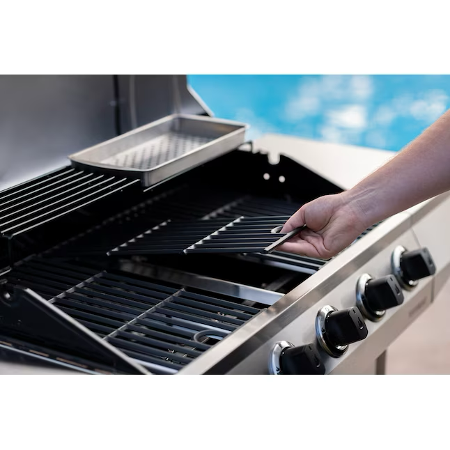 • Performance Series silver gas grill with 480-square-inches of grilling space and 165-square-inches of secondary cooking space