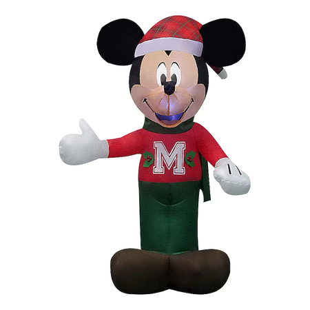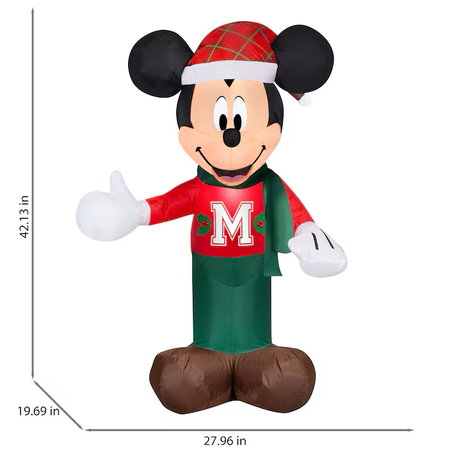 3.6-FT H x 2.3-FT W x 1.8-FT D indoor/outdoor Airblown® Inflatable Mickey Mouse in holiday sweater
