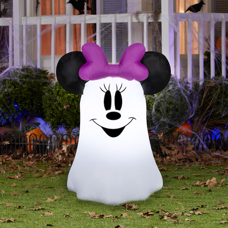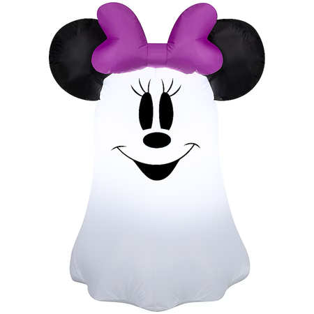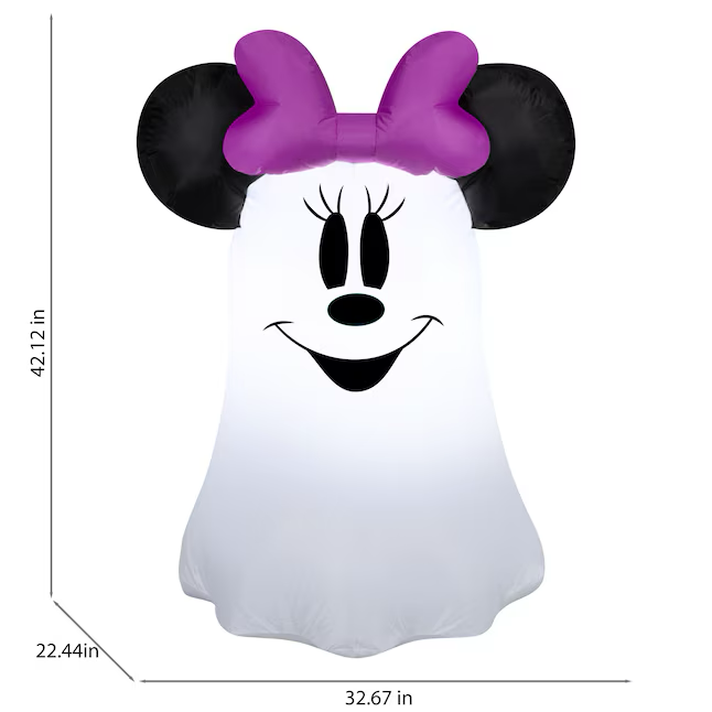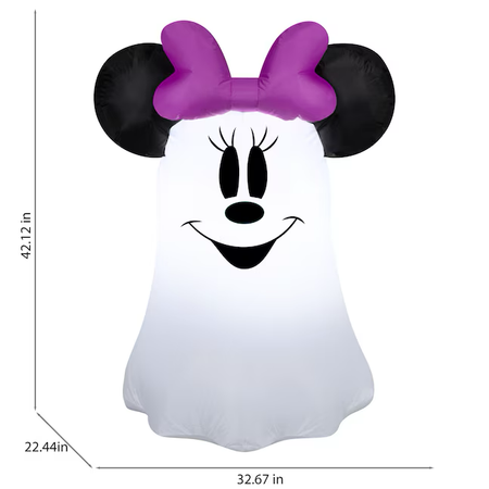 • HALLOWEEN INFLATABLE: 3.5-ft H x 2.9-ft W x 2-ft D outdoor Airblown® Inflatable Minnie Mouse styled as a ghost