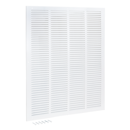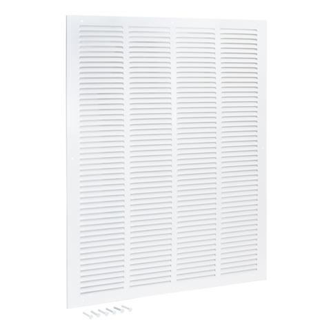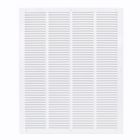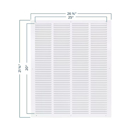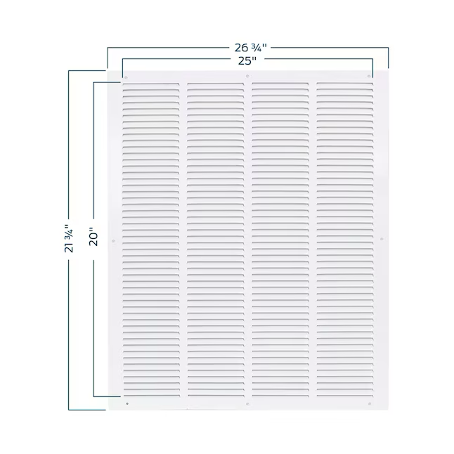 The EZ-FLO Return Air Grille is designed for wall or ceiling openings to help improve air circulation by extracting air from a room. It is made of heavy-duty steel with a white powder-coated finish that resists flaking and rust for a longer-lasting performance. It fits a rough duct opening 20 inches wide by 25 inches long. It features slotted vanes that are non-adjustable and in a fixed position. Includes (6) screws for easy installation. It is important to check the duct opening size before purchasing a duct or vent cover.