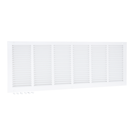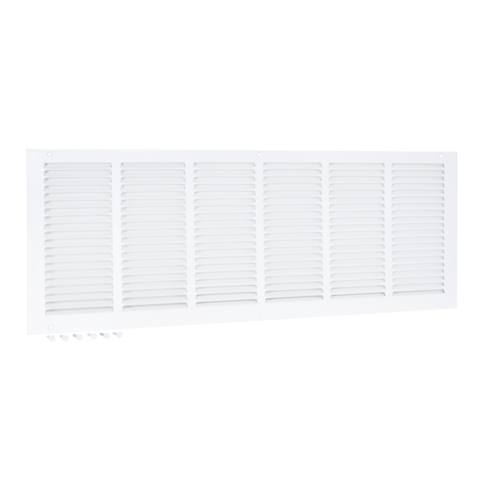 The EZ-FLO Return Air Grille is designed for wall or ceiling openings to help improve air circulation by extracting air from a room. It is made of heavy-duty steel with a white powder-coated finish that resists flaking and rust for a longer-lasting performance. It fits a rough duct opening 30 inches wide by 10 inches long. It features slotted vanes that are non-adjustable and in a fixed position. Includes (6) screws for easy installation. It is important to check the duct opening size before purchasing a duct or vent cover.