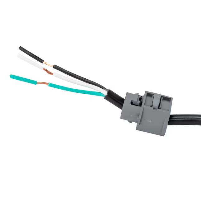 The Eastman® dishwasher power cord kit fits most major brands of dishwashers. The 3-prong power supply line is built with a black vinyl jacket and comes with a straight plug, equipped with a built-on harness for a quick install. This 5.4-foot power cord has an electric strength of 13-amperes and 125-volts. 3-wire installation, 16-gauge. Includes wire nuts. For indoor use. UL listed.