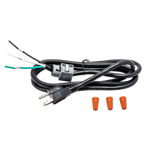 - Includes: (1) 3-prong power cord with built-on harness, (3) wire nuts.