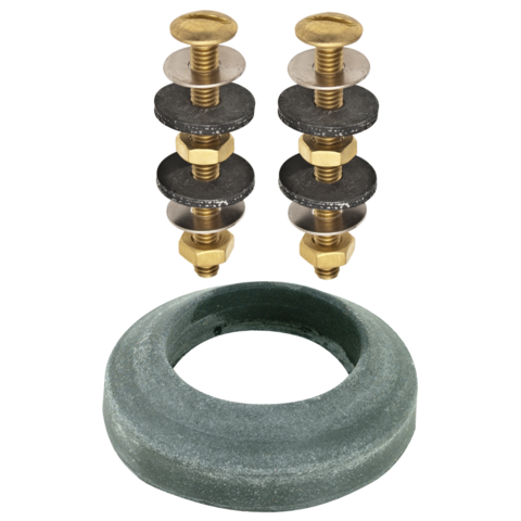 This tank-to-bowel set is designed for use with American Standard toilets. The gasket is built with beveled sponge-rubber for durable and reliable use. Replacing the gasket will eliminate any leaks returning the toilet to optimal functionality. Used on flush valves to seal the tank-to-bowel connection. This set is very easy to install and includes: (1) gasket, (2) 5/16-inch x 3-inch solid brass bolts, (2) nuts, (2) cloth washers, (2) stainless steel washers.