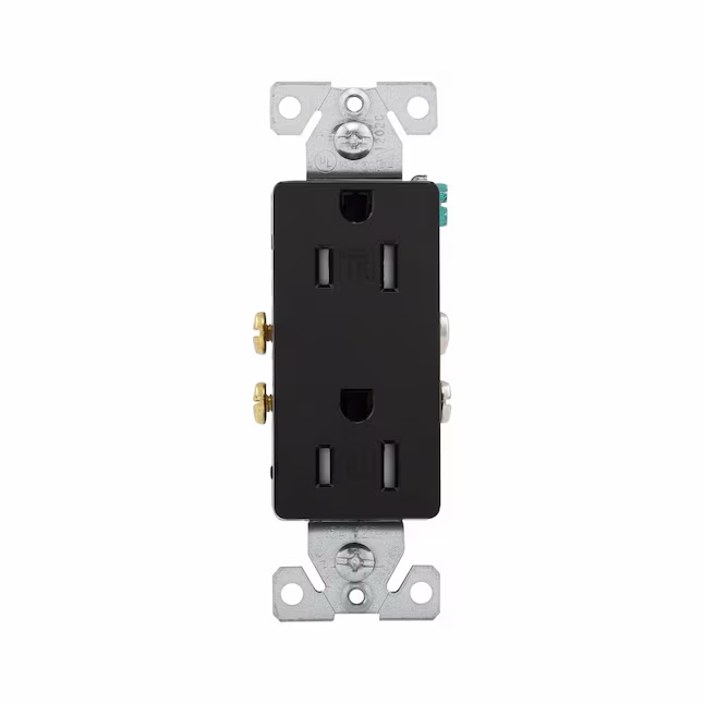 - Specifications AFCI Protection No Rust Resistant No Amperage 15 Self-Test No Audible Alarm No Style Decorator Connection Type Push in back wire (stab) or side wire Surge Protection No For Use with Mobile Homes No Tamper Resistant Yes For Use with RVs No USB Port No Function Type Receptacle outlet USB Type N/A GFCI Protection No Use Location Indoor Grade Residential/Commercial Voice Controlled No Grounding Type Grounded Volts 125-volt Hub Required No Wall Plate Included No Lockable No Weather Resistant No NEMA Configuration 5-15R Wire Type Copper Night Light No Wireless No Number of Outlets 2 Wiring Type 3-wire grounding