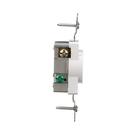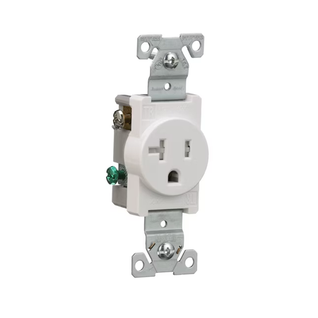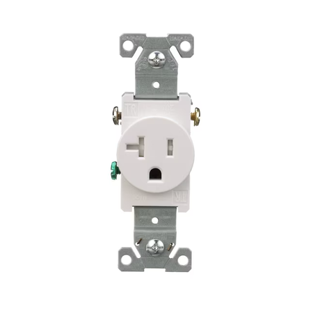 - Specifications AFCI Protection No Rust Resistant No Amperage 20 Self-Test No Audible Alarm No Style Round Connection Type Side wire only Surge Protection No For Use with Mobile Homes No Tamper Resistant Yes For Use with RVs No USB Port No Function Type Receptacle outlet USB Type N/A GFCI Protection No Use Location Indoor Grade Residential/Commercial Voice Controlled No Grounding Type Grounded Volts 125-volt Hub Required No Wall Plate Included No Lockable No Weather Resistant No NEMA Configuration 5-20R Wire Type Copper Night Light No Wireless No Number of Outlets 1 Wiring Type 3-wire grounding