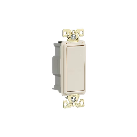 Light almond finish single-pole decorator switch offers 20A, 120/277V capacity designed to provide superior quality, reliability, and performance in a variety of commercial and residential applications