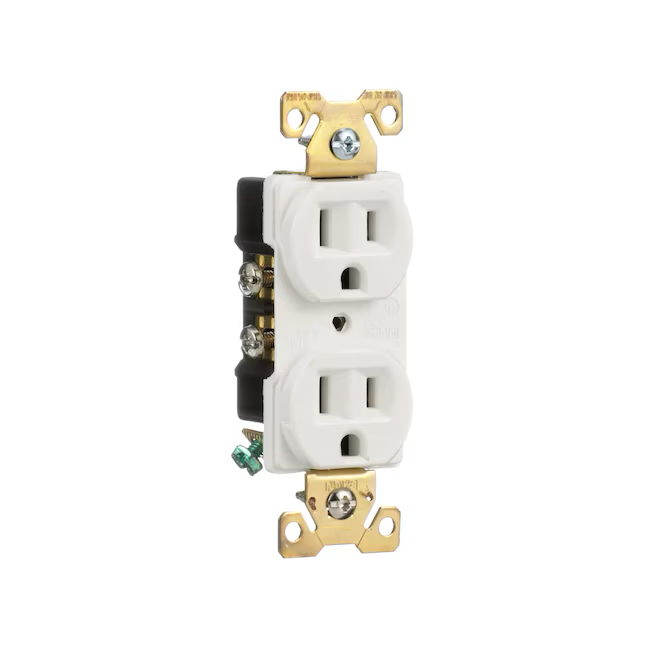 White finish industrial grade duplex receptacle offers a 15A, 125V capacity able to withstand the most abusive environments and excel in applications that require the highest level of performance