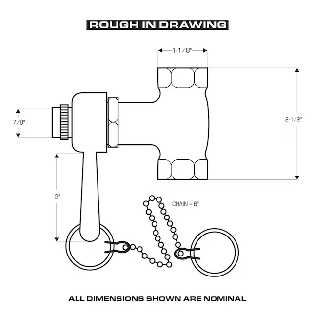• The valve measures: 2.5-inches deep x 2.5-inches wide x 8.75-inches long (including chain)