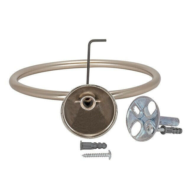 - Features Assembly Required Yes Mount Type Wall mount Collection Name N/A Mounting Hardware Included Yes Design Single Number of Rings 1 Fixture Color Family Nickel Projection from Wall (Inches) 2.75 Fixture Finish Brushed Shape Circle Lowe's Exclusive No Swinging Yes Manufacturer Color/Finish Brushed Nickel Type Closed Material Zinc