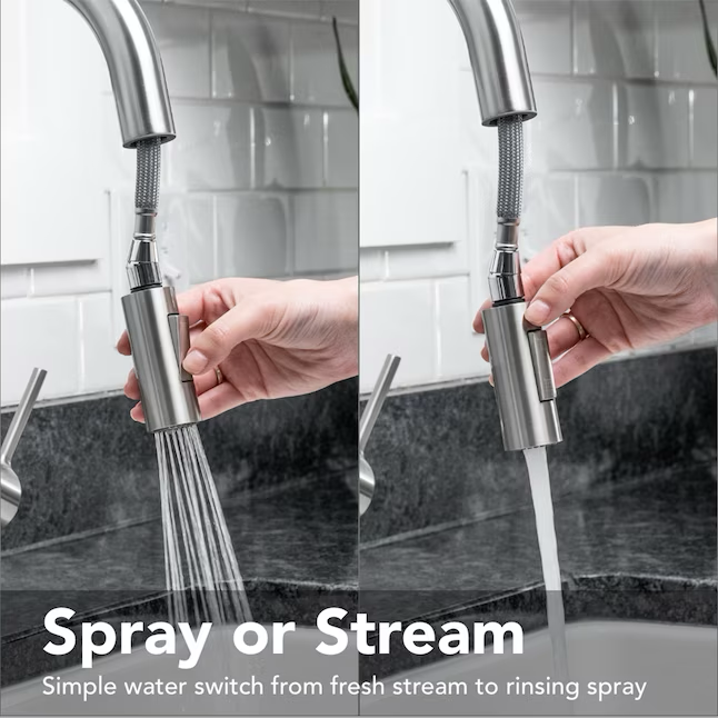 Pull-down narrow spray head allows you to go from fresh stream to strong rinsing spray