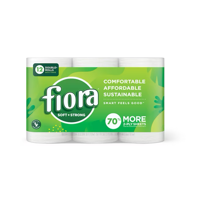 FIORA Soft and Strong 2-Ply Toilet Paper, 12 Rolls, 250 Sheets per Roll, 349.1 Sq. Feet, Safe for Septic Tanks