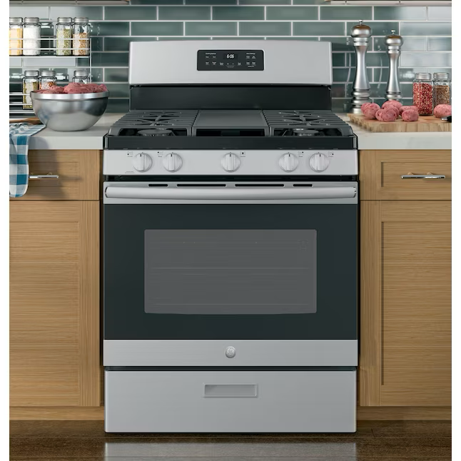 GE 30-in 5 Burners 5-cu ft Freestanding Natural Gas Range (Stainless Steel)