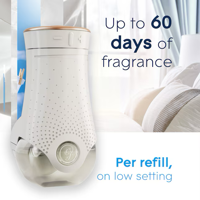 One size really does fit all. Creating the perfect mood is just an outlet away with Glade Clean Linen PlugIns Scented Oil, a scent diffuser you can adjust to meet your fragrance needs. Simply fill the scented oil warmer with a refill and plug it in to freshen a room with long-lasting scent (up to 50 days on low setting).