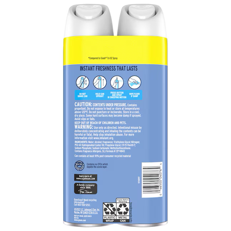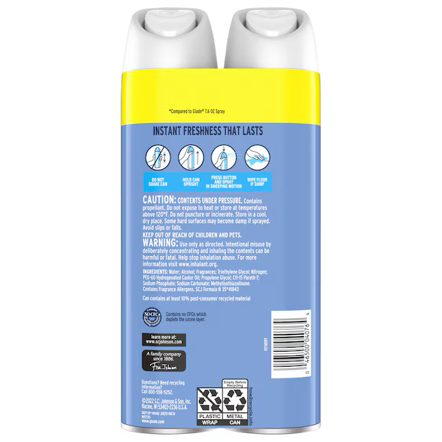 Now with 2x more fragrance (vs Glade 7.6 oz spray), it’s easier than ever to enjoy waves of freshness – the can got a fashion makeover and the push button gives you improved comfort and control