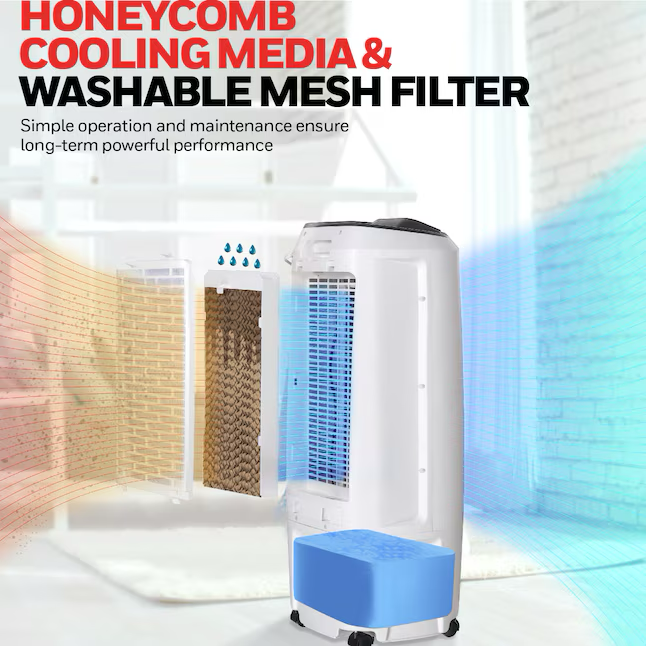 Honeywell 214-CFM 3-Speed Indoor Portable Evaporative Cooler for 130-sq ft (Motor Included)