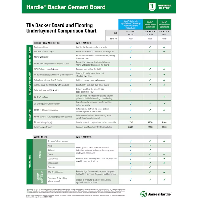 James Hardie HardieBacker 3-ft x 5-ft x 1/2-in Water Resistant Fiber Cement Backer Board