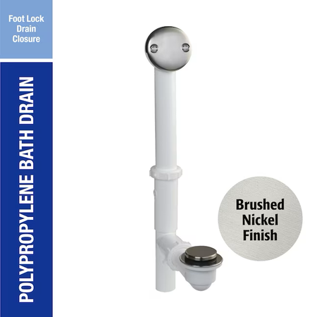 Keeney 1.5-in Brushed Nickel Foot Lok Stop White/Brushed Nickel Foot Lock Drain with Polypropylene Pipe