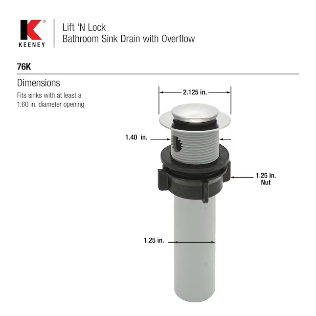 Fits sinks with at least a 1-3/5-in diameter opening
