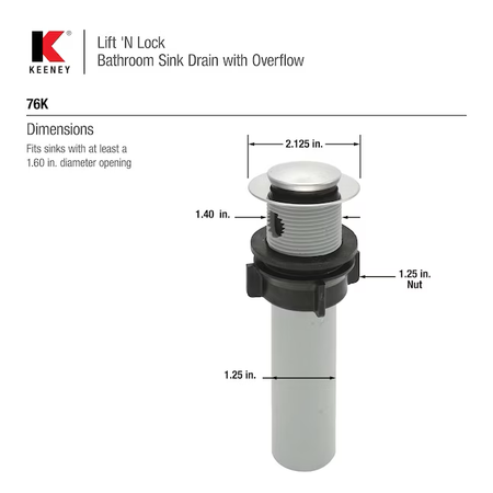 Keeney Lift 'N Lock Chrome Bathroom Sink Pop Up Drain