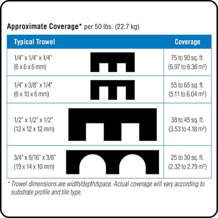 • Non-slump formula of this medium bed mortar is designed to bond and support large tile over a wide range of floor substrates
