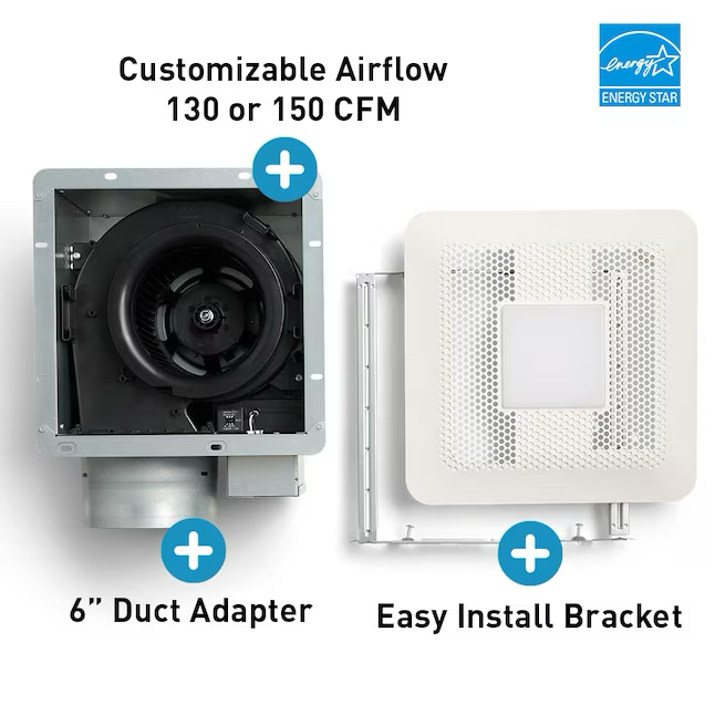 Two airflow options of 130 CFM or 150 CFM, perfect for large rooms 130 to 150 Sq Ft