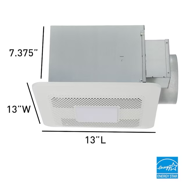 - Dimensions Ceiling Cutout Length (Inches) 11.0 Fan Box Width (Inches) 14.17 Ceiling Cutout Width (Inches) 11.0 Grille Length (Inches) 13.0 Duct Size 6-in Recommended Room Size (Sq. Feet) 130.0 Fan Box Height (Inches) 11.85 Suggested Room Size 100-149 sq ft Fan Box Length (Inches) 16.73 Width of Grille (Inches) 13.0