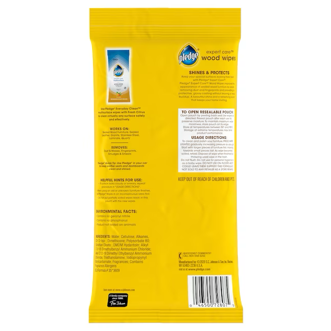 Pledge Enhancing Wipes 24-Count Lemon Wood Furniture Cleaner Pad