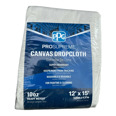 Expertly protect your floors and surfaces with the heavy-duty PPG ProSupreme Canvas Drop Cloth. Measuring 12 feet by 15 feet and weighing 10 ounces, this drop cloth offers superior coverage and durability. Trust the industry-leading brand to provide unbeatable protection for your projects.