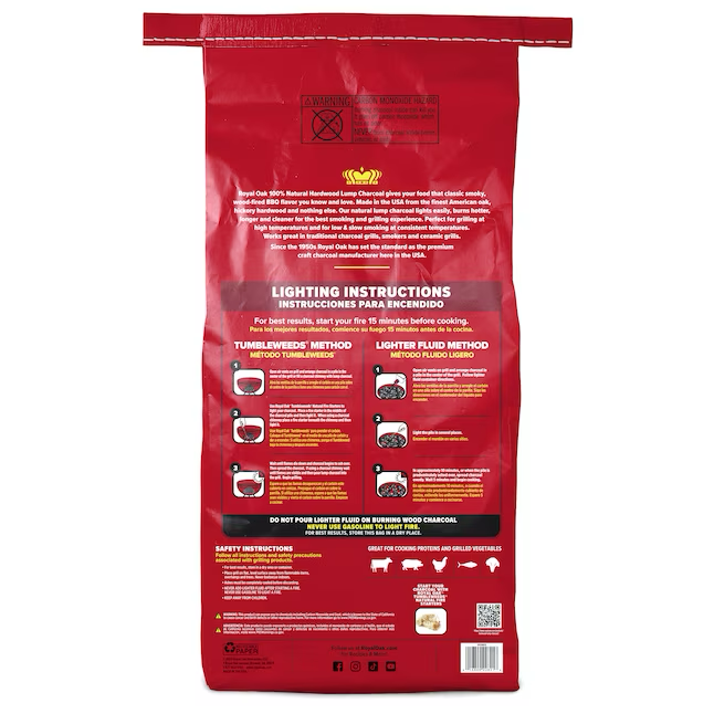 Royal Oak 100% All Natural Hardwood Lump Charcoal lights easily and burns clean making for juicy, mouthwatering food