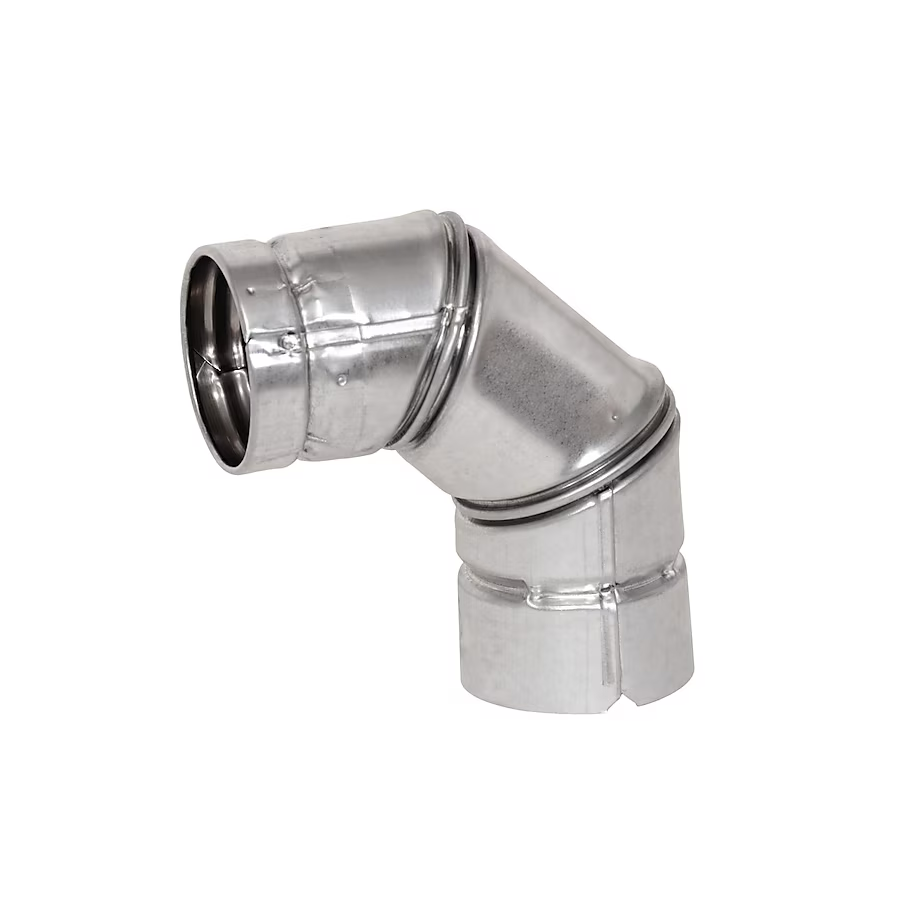 The 4 in. x 9 in. steel 90° adjustable gas vent elbow is a type B fitting used to create an offset around rafters, joists and other construction obstacles. The strong, durable, galvanized-steel outer pipe has internal spacing bends to create a uniform insulating air space between pipe walls. Each end is die-formed to assure uniform sizing for strong, easy-to-connect joints. A lock tab feature offers the option of installation without sheet-metal screws. It is UL listed for safety in accordance with nape standards.