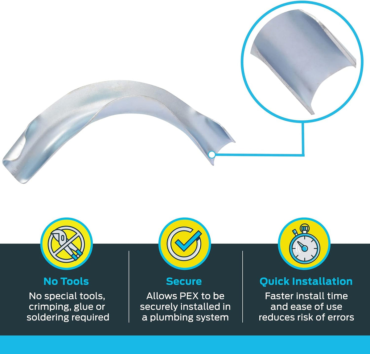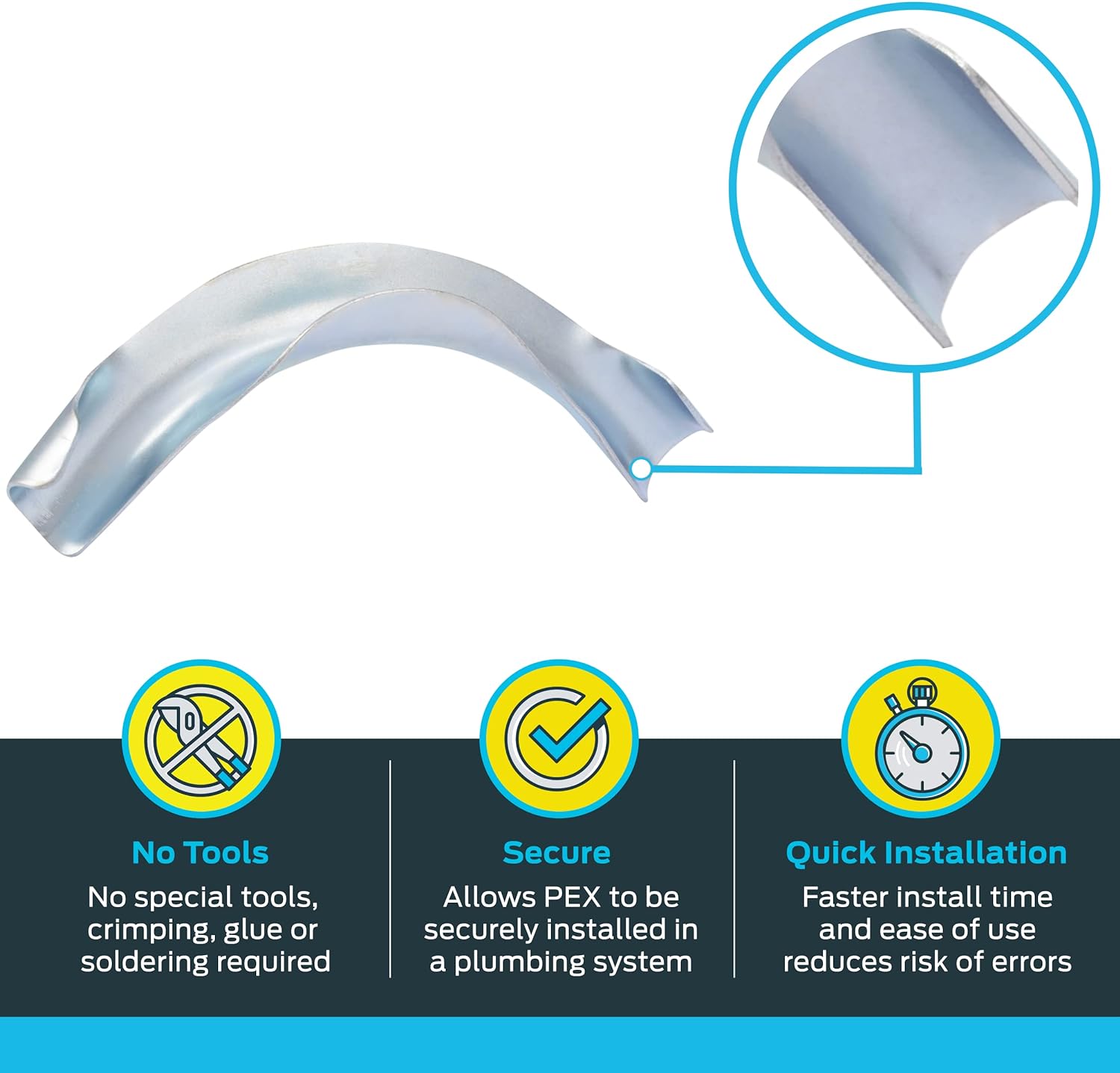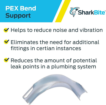 PEX Bend Supports allow for 90° bends to be made with PEX tubing which can eliminate the need for additional fittings in certain instances, reducing the amount of potential leak points in a plumbing system. Bend supports also help to reduce noise and vibration.
