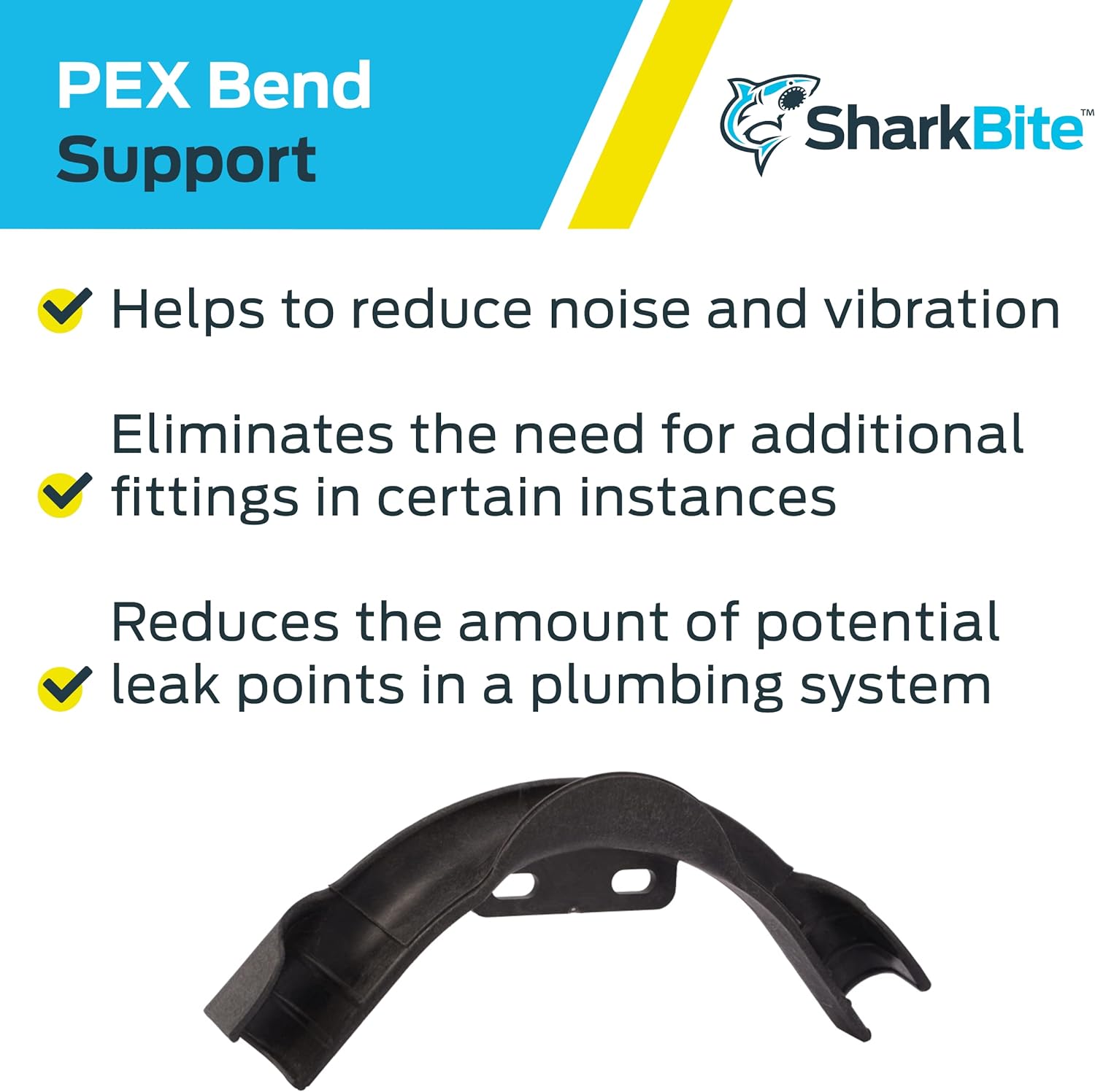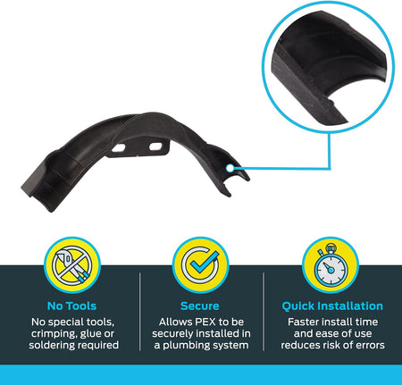 PEX Bend Supports allow for 90° bends to be made with PEX tubing which can eliminate the need for additional fittings in certain instances, reducing the amount of potential leak points in a plumbing system. Bend supports also help to reduce noise and vibration.