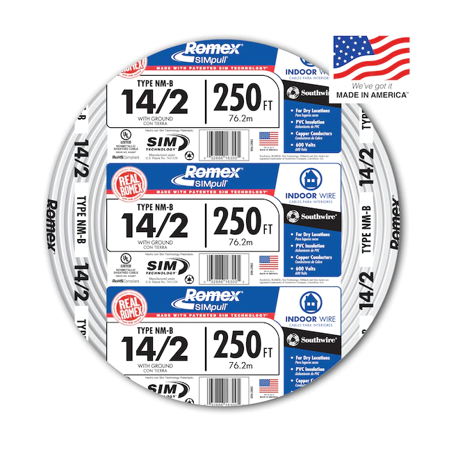 Southwire Romex SIMpull 250-ft 14 / 2 Solid Indoor Non-Metallic Wire