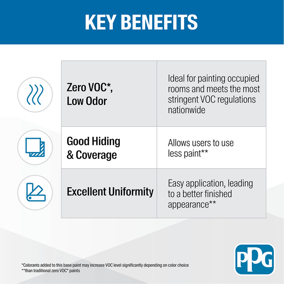 • Specifications Zero VOC* Good Hiding & Coverage Excellent Uniformity