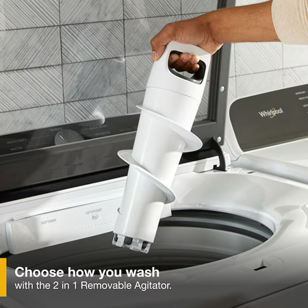 360 Wash Agitator Option - Thanks to the 2 in 1 Removable Agitator, you can easily reinsert the agitator whenever you want to switch back from the impeller - Multiple wash motions gently move clothes up, down and side to side throughout the cycle for a thorough clean in different water levels